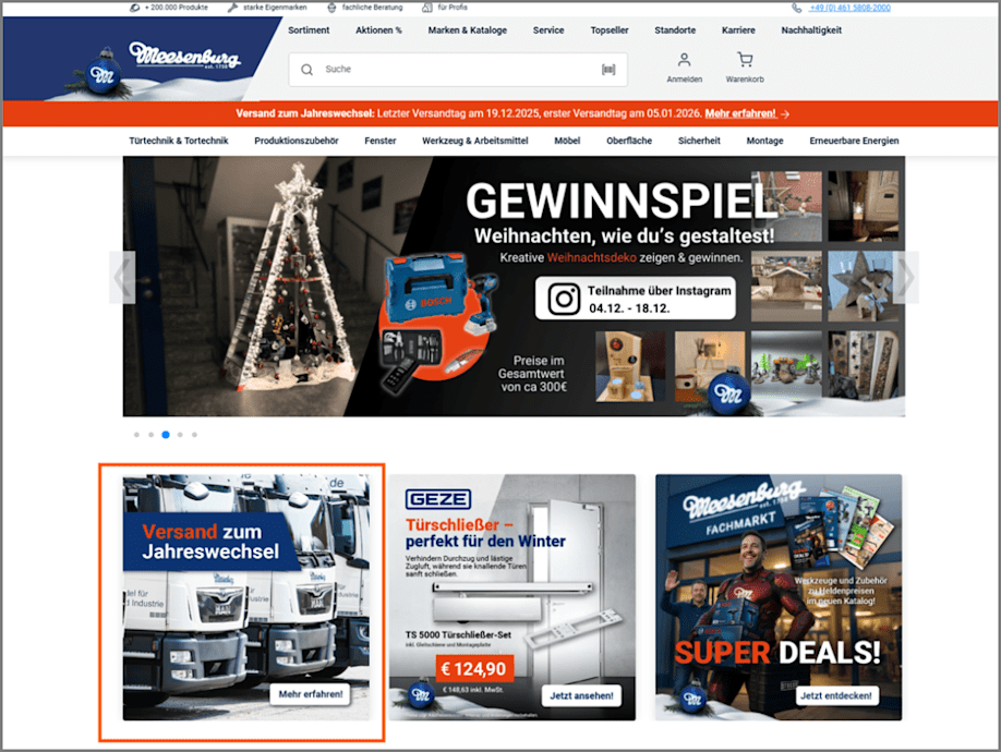 Auf der Startseite gibt es ab sofort einen neuen Informationsbereich. Hier informieren wir regelmäßig über aktuelle Themen, Neuerungen und relevante Funktionen im Onlineshop. Das jeweilige Banner führt auf eine Newsmeldung mit weiterführenden Informationen.