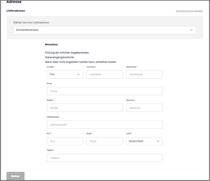 - Wird das Limit überschritten, kann der Warenkorb nicht direkt bestellt werden.